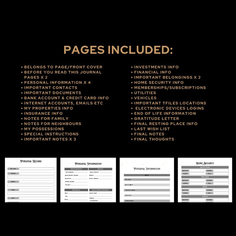 It will make it much easier for your loved ones to settle your affairs. Simply purchase. spend some time filling out all the fields and information... then store your planner in a safe place and tell your loved one(s) where to find it if something were to happen to you.