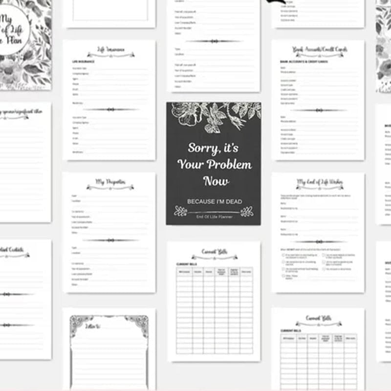 💀💀The “Sorry, it's Your Problem Now , Because I'm Dead” end-of-life planner and "Fuck I'm Dead" End Of Life Planner are also popular.
