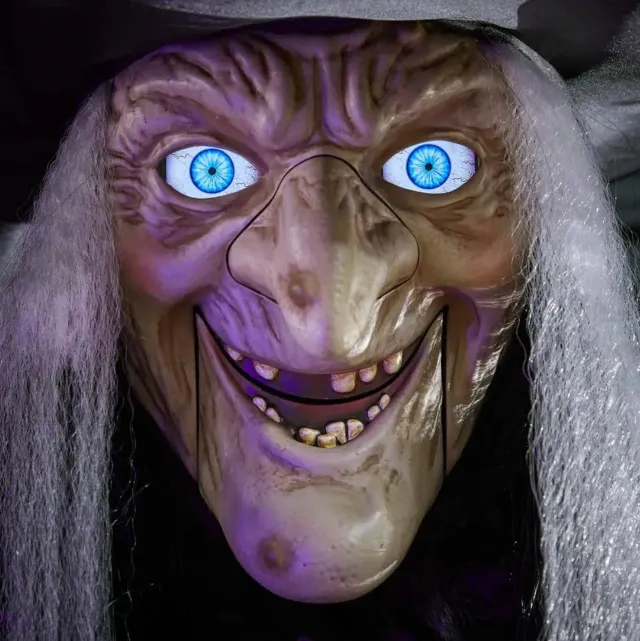 Her eerie glowing presence, twisted grin and red glowing eyes are sure to send shivers down trick-or-treaters' spines.