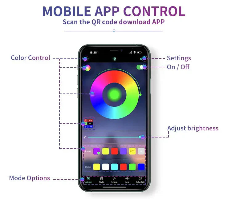 Youβll receive a QR code in the package that you can use with the app on phone, whether itβs iOS or Android. With the app, you can easily control your LED floor mats, change colors, and much more.